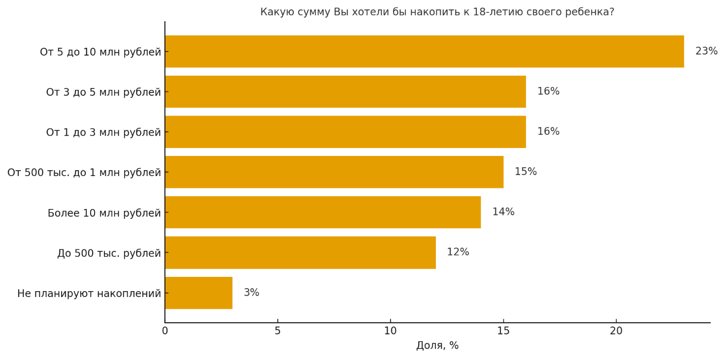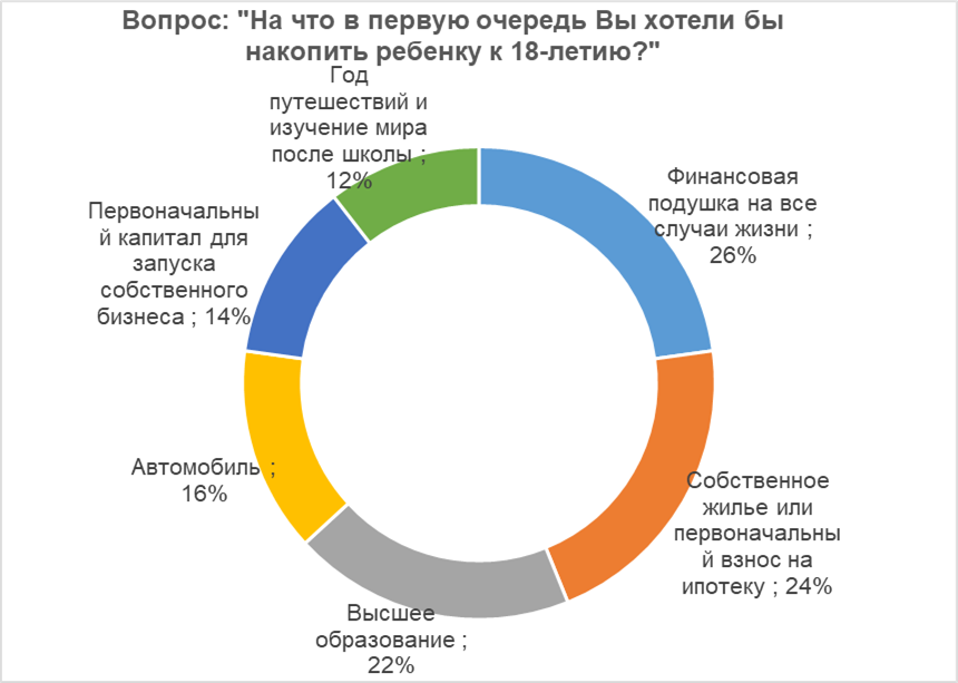 Ответы респондентов на вопрос «На что в первую очередь Вы хотели бы накопить ребенку к 18-летию?»