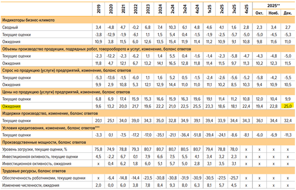 Вчера, 22 декабря, был также опубликован информационно-аналитический комментарий Мониторинг предприятий. Ценовые ожидания бизнеса выросли, составив 25 п. ЦБ подчеркивает, что рост ценовых ожиданий наблюдается уже третий месяц подряд.